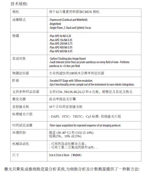 共聚焦高内涵成像分析系统是目前功能zui为灵活的高内涵系统。得益于共聚焦成像清晰的特点,实验者可以对活细胞或固定后的细胞进行更精雀的定量分析。利用这套系统实验者可以轻易地观测复杂的3D模型,如3D细胞球、组织乃至小型模式生物整体,从而进一步分析更多的生理学相关问题。本系统可以自动且迅速地从1-1536微孔板或者组织切片的样本中轻易得到发表级高质量图像。
