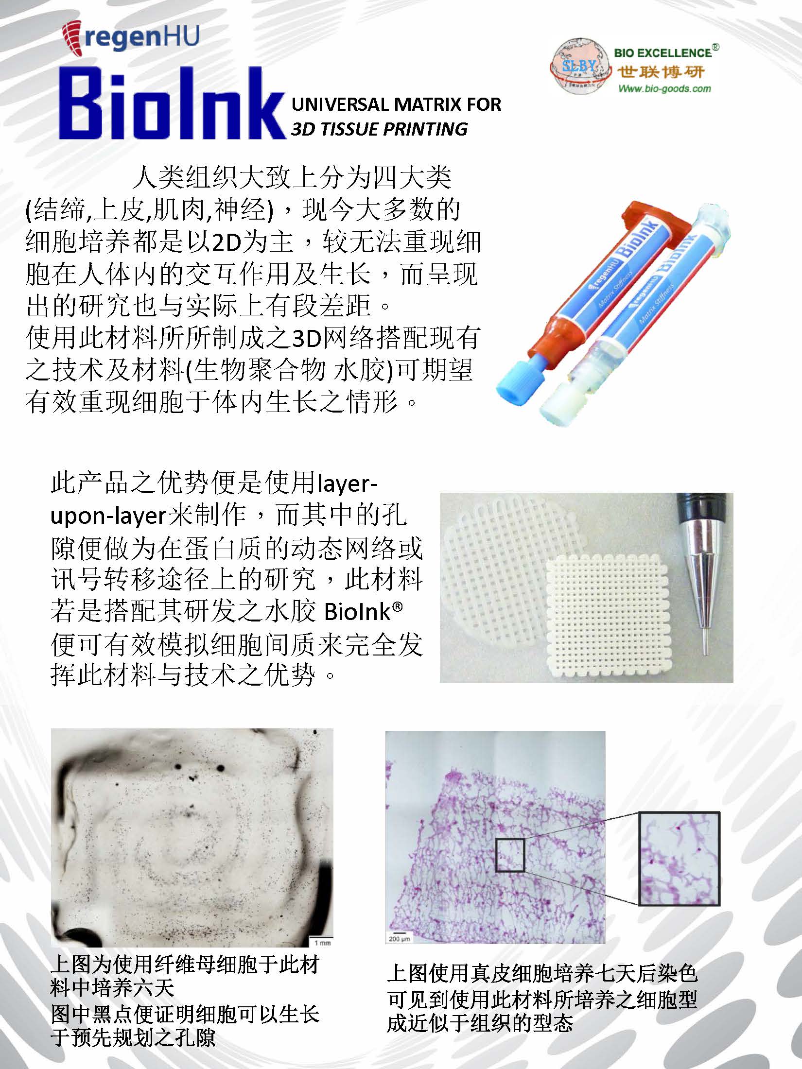 A versatile, chemically-defined hydrogel, supporting cell attachment, growth, differentiation and migration. The BioInk ™ is suitable for long-term tissue cultivation (in vitro human dermis for up to 7 weeks).