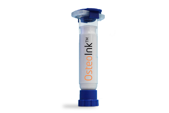 OsteoInk™ is a ready-to-use calcium phosphate paste for scaffolding and structural engineering. OsteoInk™ is a highly osteoconductive biomaterial close to the chemical composition of human bone. Dedicated to hard tissue engineering such as bone, cartilage or structural scaffold manufacturing, OsteoInk™ can be combined during the printing process with our biomaterial product portfolio (e.g ECM-BioInk ™) to create complex 3D tissue models.