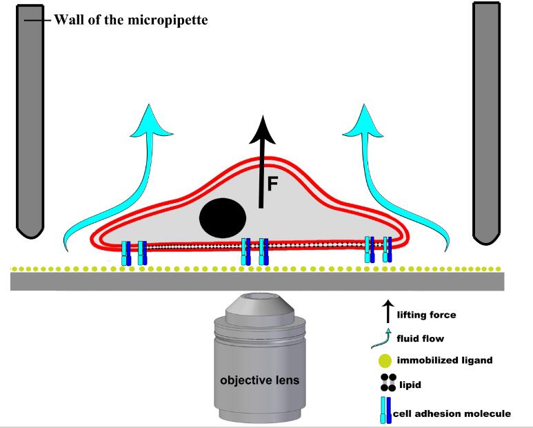 单个细胞粘附力测定模式图: