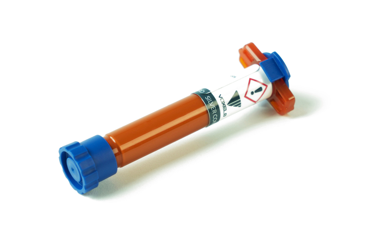 Standard silver ink dries quickly at room temperature yielding highly conductive electrode traces without additional curing steps. Additional dispense tips can be ordered to ensure printing of reliable silver feature。