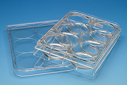 The silicone substrates of CytoSoft® plates are optically clear and have a low auto-florescence. The layer of silicone in each well is firmly bonded to the bottom of the well. Unlike hydrogels (such as polyacrylamide gels), silicone gels are not susceptible to hydrolysis, do not dry nor swell, are resilient and resistant to tearing or cracking, and their elastic moduli (rigidities) remain nearly unchanged during extended storage periods. CytoSoft® products accommodate the harvesting of cells using enzymes such as trypsin and collagenase. There is no biochemical breakdown of the substrate during or after enzyme treatment, and there are no residuals of the substrate in the sample retrieved from a CytoSoft® plate. For researchers who are unsure on which stiffness to use, we offer a Discovery Kit (5190) that has various elastic moduli of approximately 0.2, 0.5, 2, 8, 16, 32 and 64 kPa in 7 individual 6-well plates