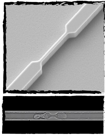 此芯片包含一组可变尺寸的微通道,细胞可在其中迁移。