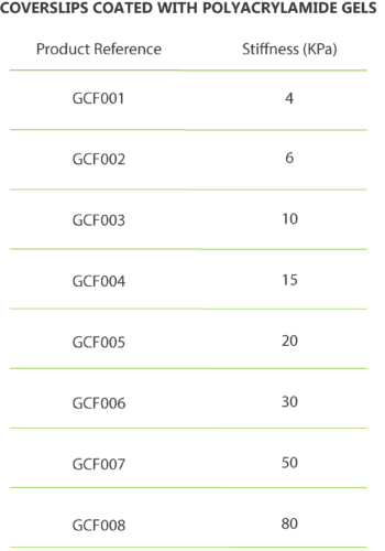 提供用于细胞培养的聚丙烯酰胺凝胶涂层盖玻片。