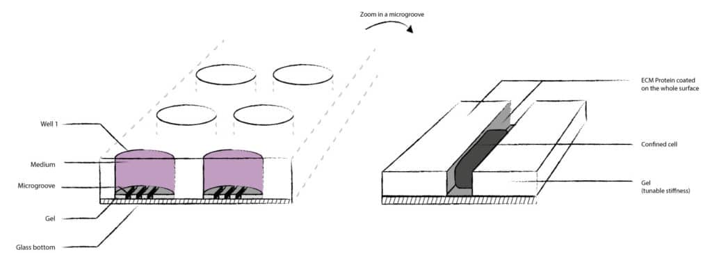 细胞在平坦或微结构化的软3D环境中培养,以模仿体内条件。