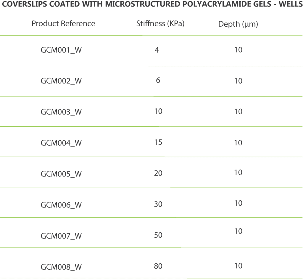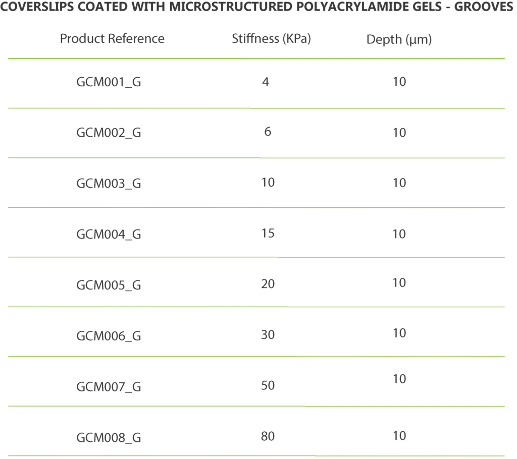 提供用于细胞培养的微结构聚丙烯酰胺凝胶涂层盖玻片。