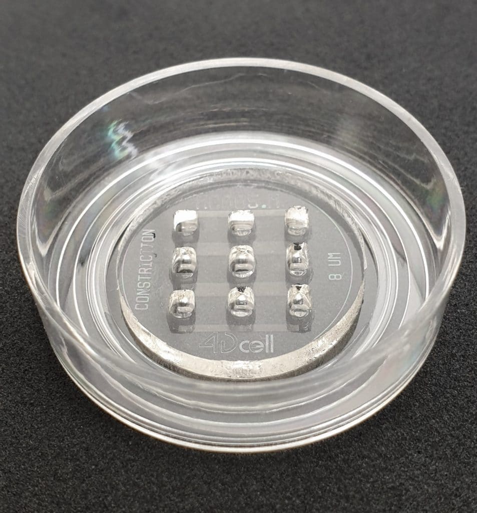 微通道是刻在PDMS芯片中的微观通道。 它们使您可以研究不同形状和大小的微通道内的细胞迁移。 您可以调整取决于您想强加给你的细胞什么条件下系统的功能。