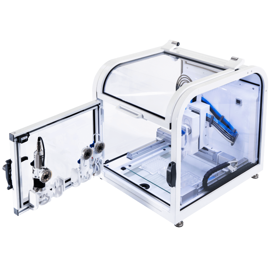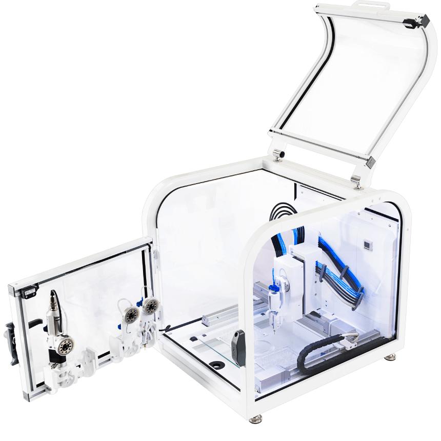 ——在单个打印平台上提供可变多种的打印方式(注射挤出打印头、细胞友好型微阀打印头、微液滴悬液打印头、螺旋挤出打印头等),经济的价格,高端打印机的性能