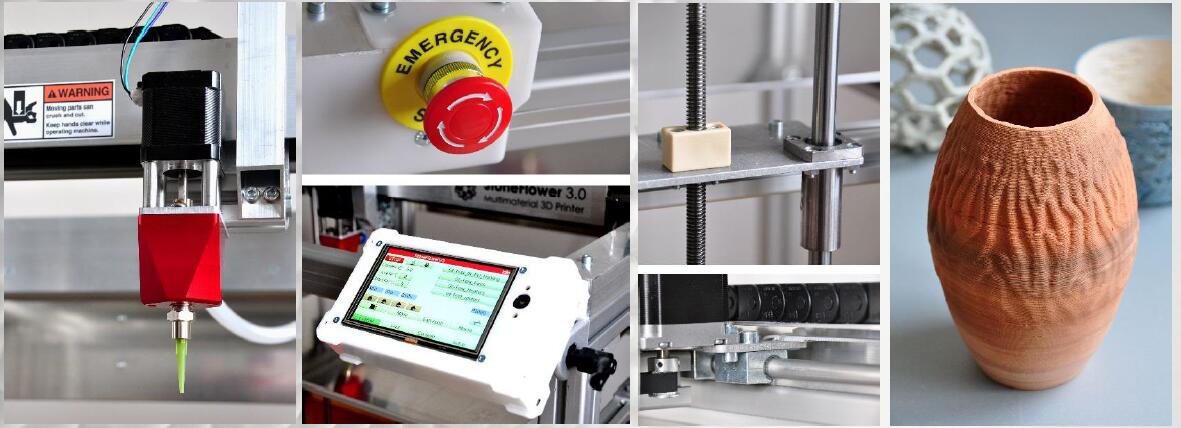 产品说明多材料打印机(Multimaterial 3D PRINTERS)精度打印粘土/瓷器,混凝土,浆糊,涂料等。它们结合了来自冲压机的容积式进料,并通过的quan金属印刷头精度地沉积了物料。 StoneFlower是一台同时进行快速液体打印的商业3d打印机.