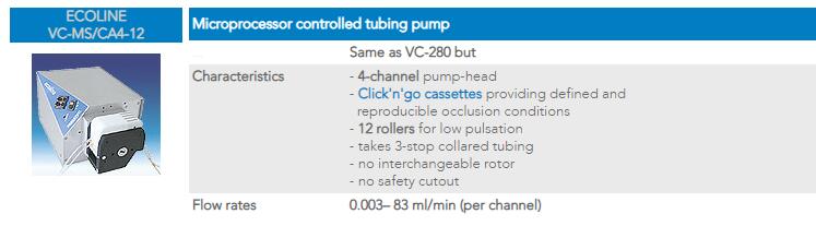 对于多通道泵(多为24个通道),每个通道可以以不同的流速du立且同时的传输各种不同的介质