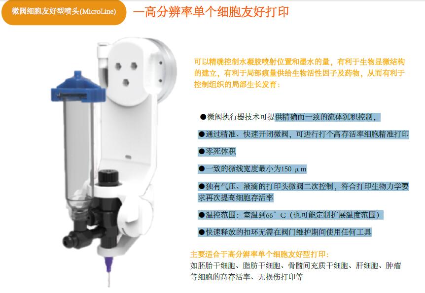 高端生物3D打印机 世联博研北京科技公司联合欧美国际前沿厂家推出了一系列灵巧实惠型的集成微阀细胞喷射打印头、微量悬液打印头、熔融静电纺丝打印头、溶液静电纺丝打印头以及同轴打印头、螺旋杆挤出打印头等各式打印技术打印头以及 UV LED固化头等各种打印技术和打印头的小型桌面式3D生物打印机。以实用的功能、低廉的购置成本以及简便的操作把高端3D生物打印技术送进每一个实验室!