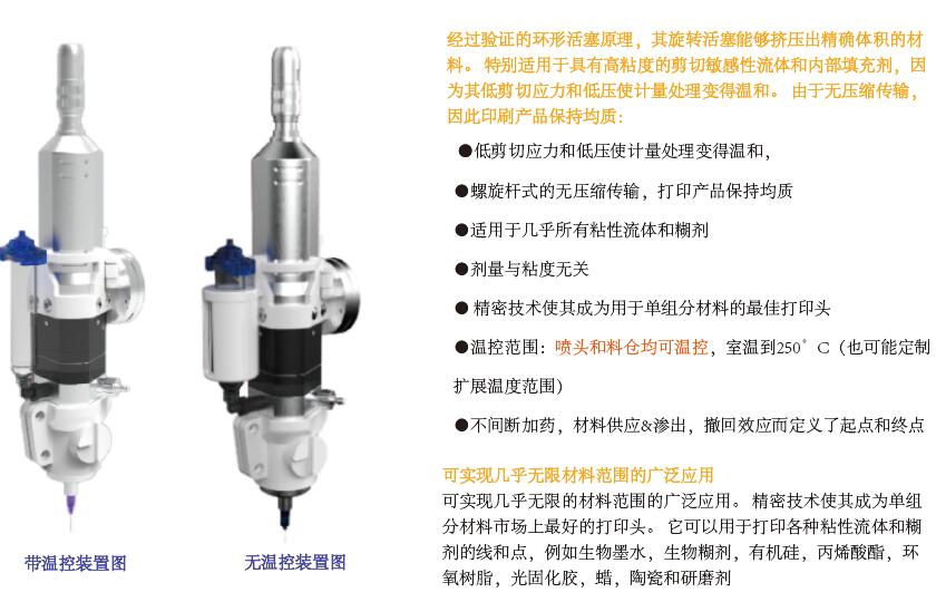 2、细微量悬液打印喷头![]() (四)、高温高粘度螺旋挤出打印头