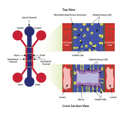 这种微流体装置的优势在于,可以为气道上皮和相邻的内皮形成完整的管腔。 UAB医学院儿科肺病学家兼助理教授Jennifer Guimbellot博士说:“这是模型发展的一大,该模型概括了细胞的分化和组织成管状结构,类似于小气道和微脉管系统。”