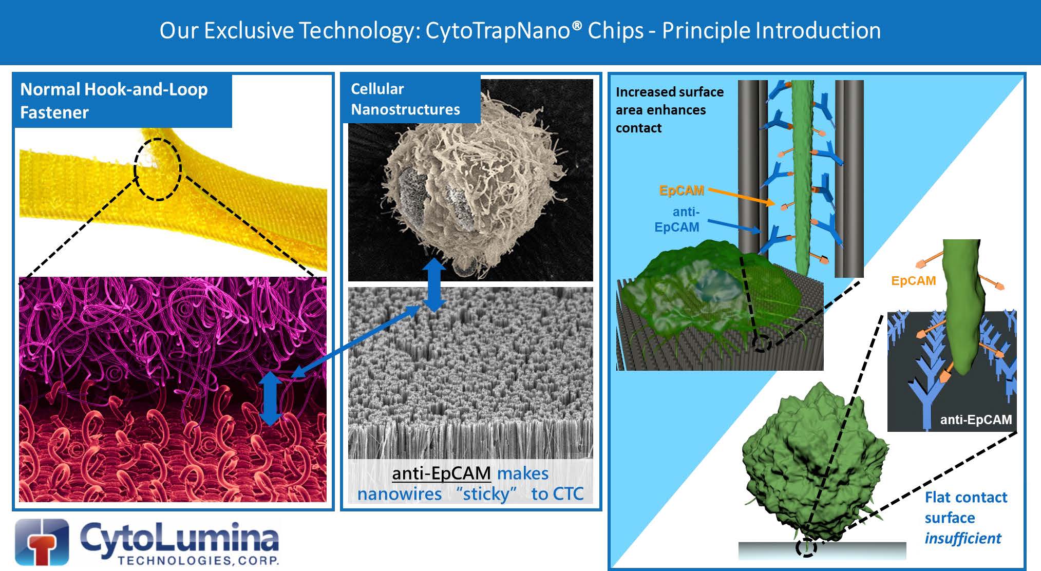 专利技术平台——CytoTrapNano® 系统采用革命性的、专利的细胞亲和纳米结构基底分选平台、集成微流体系统和新型免疫化学程序。