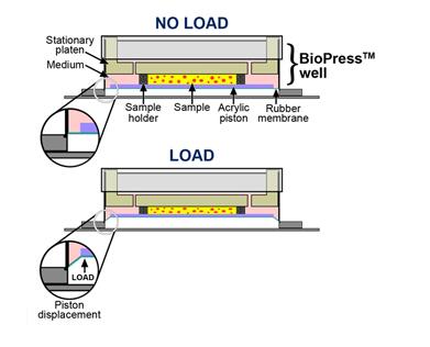 Schematic of how compression is applied to tissue samples in a BioPress? well.