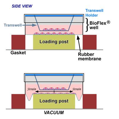Schematic of a Transwell Holder with a Transwell supported atop the rubber membrane in the well of BioFlex® culture plate.
