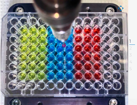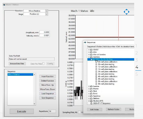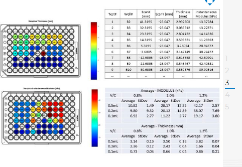 INDENTATION AND THICKNESS MAPPING ON SAMPLES OF DIFFERENT STIFFNESSES IN A 96-WELL PLATEThe testing of biological materials as well as bacteriological, viral, and cell cultures is made easier with well plates. They contain many plastic-formed wells that are used as miniature test tubes. This is excellent for downsizing test space and for performing many tests at once. In this case study, a multiaxial mechanical tester model MachOne v500css was used to determine the thickness and stiffness of small samples of agarose gels in a 96-well plate. Multiple concentrations were tested from 0.8% to 1.2% and with volumes of these gels varying from 0.1 to 0.5 mL. The samples were made from 6 mm biopsy punched disks instead of pouring the Agar solution directly into the wells in order to ensure a flat surface for indentation testing.