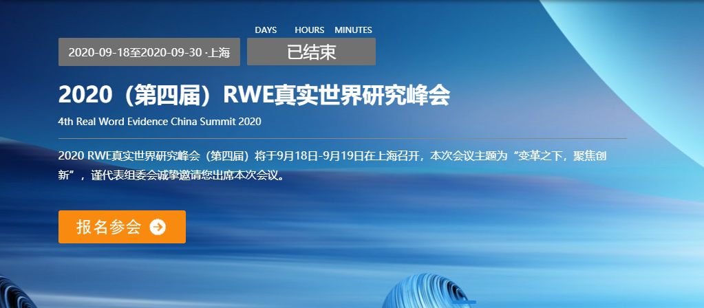 2020 RWE真实世界研究峰会(第四届)将于9月18日-9月19日在上海召开,本次会议主题为“变革之下,聚焦创新”,谨代表组委会诚挚邀请您出席本次会议。 2020年伴随着一场突如其来的疫情给全球医疗环境带来的巨大挑战,医药大环境也发生了急剧变化,国家大力推进医药卫生体制改革。着眼于临床治疗规范性的提升与药物应用水平的提高,医药企业如何在独特的医药大环境下顺应形势开展符合本土特色的真实世界研.....